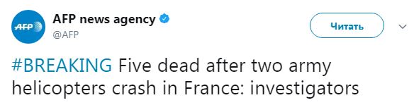 "Вертолеты разбились, было трое членов экипажа в одном и двое в другом, все погибли", - сказано в сообщении компании жандармерии Бриньоле.