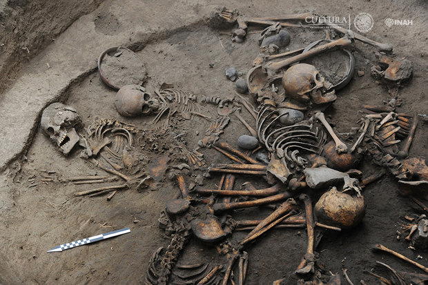 В Мехико археологи обнаружили захоронение, сделанное более 2500 лет назад. Больше десяти человек были похоронены одновременно в круглой могиле, их тела были соединены и расположены спиралью.
