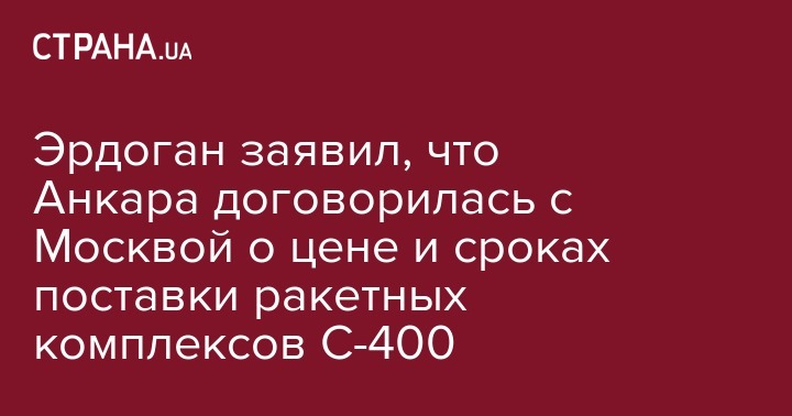 Эрдоган заявил, что Анкара договорилась с Москвой о цене и сроках поставки ракетных комплексов С-400
