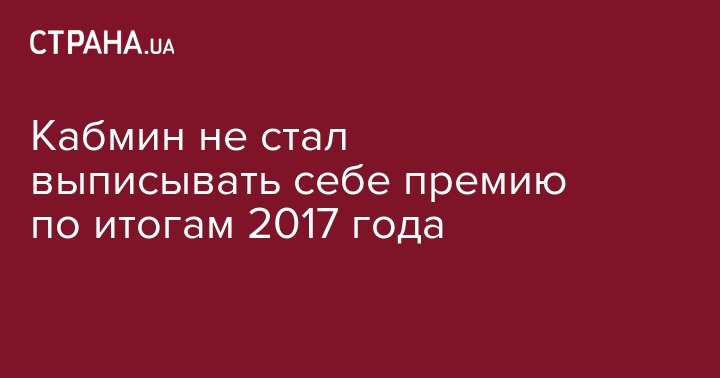 Кабмин не стал выписывать себе премию по итогам 2017 года