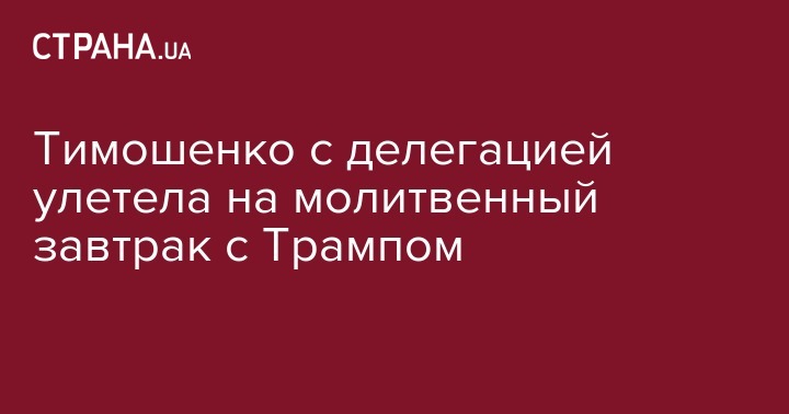 Лидер партии "Батькивщина" Юлия Тимошенко вместе с делегацией отправилась в Вашингтон на 66-й Национальный молитвенный завтрак, на котором выступит президент США Дональд Трамп. Об этом сообщается на сайте политсилы.