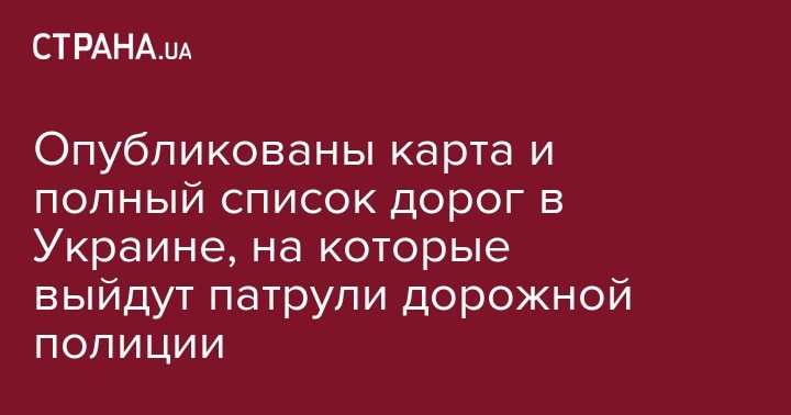 Опубликованы карта и полный список дорог в Украине, на которые выйдут патрули дорожной полиции