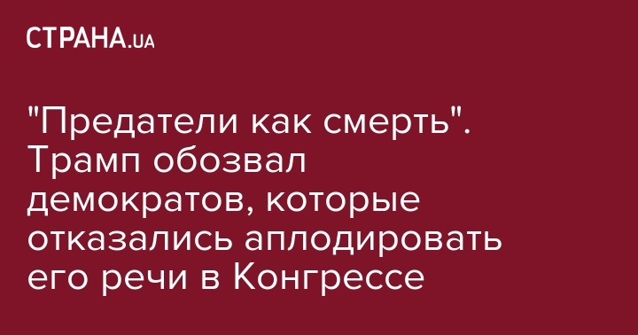 Президент США Дональд Трамп сравнил демократов с предателями за отказ аплодировать его речи перед конгрессом. Об этом сообщает NBC News.