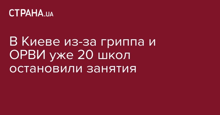 В Киеве во избежание распространения инфекции принято решение приостановить занятия в 20 школах, где уровень заболеваемости гриппом и острыми респираторными вирусными инфекциями (ОРВИ) превысил 20%, кроме того, в 35 школах прекращены занятия в отдельных классах, сообщил первый заместитель главы Киевской горгосадминистрации Николай Поворозник, сообщает сайт киевской администрации