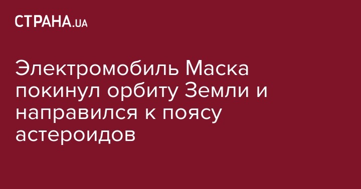 Личный электромобиль Илона Маска Tesla Roadster, который был запущен в космос в качестве нагрузки во время запуска самой мощной ракеты Falcon Heavy, покинул орбиту Земли и направляется к поясу астероидов.