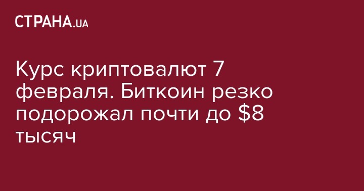 По состоянию на 10:50 7 февраля после периода падения биткоин вновь подорожал почти до $8 тысяч. Прибавили в цене и другие криптовалюты.