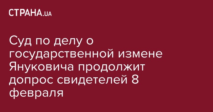Оболонский районный суд Киева продолжит 8 февраля допрос свидетелей по делу о госизмене против бывшего президента Украины Виктора Януковича.
