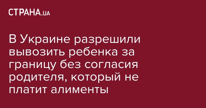 "Тот из родителей, с кем по решению суда проживает ребенок, самостоятельно решает вопрос о временном выезде ребенка за пределы Украины с целью лечения, обучение ребенка за границей, отдыха, при наличии справки, выданной органом государственной исполнительной службы, о наличии задолженности по уплате алиментов, совокупный размер которой превышает сумму соответствующих платежей за шесть месяцев", - говорится в новой редакции статьи.