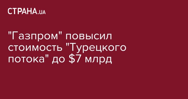 Российский "Газпром" повысил оценку стоимости "Турецкого потока" до $7 млрд.