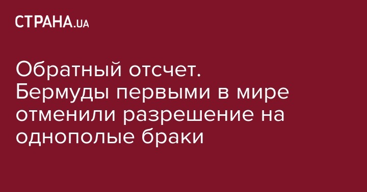 Бермудские острова (Великобритания) стали первой в мире территорией, на которой ввели запрет на ранее легализованные однополые браки.