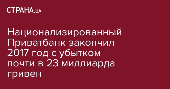 Национализированный Приватбанк закончил 2017 год с убытком почти в 23 миллиарда гривен