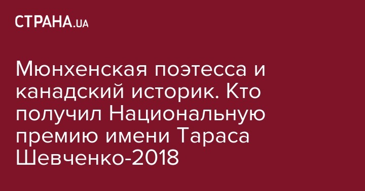Мюнхенская поэтесса и канадский историк. Кто получил Национальную премию имени Тараса Шевченко-2018