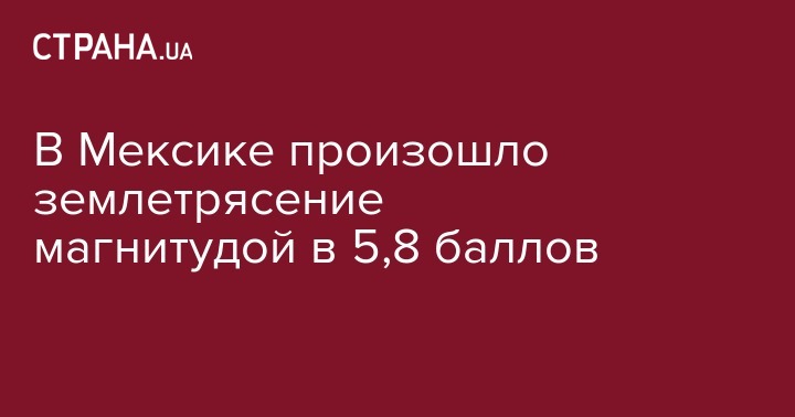 У западного побережья Мексики произошло сильное землетрясение магнитудой 5,8. Об этом сообщает Reuters со ссылкой на Геологическую службу США.