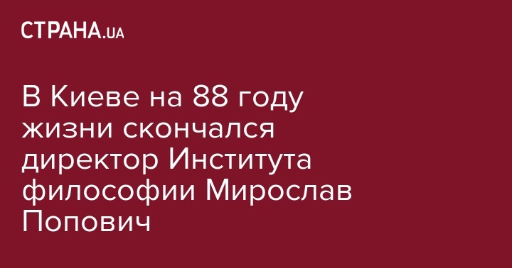 Директор Института философии Мирослав Попович скончался на 88 году жизни. Об этом сообщает проректор по научно-педагогической работе КНУ им. Шевченко Владимир Бугров на своей странице в Facebook.