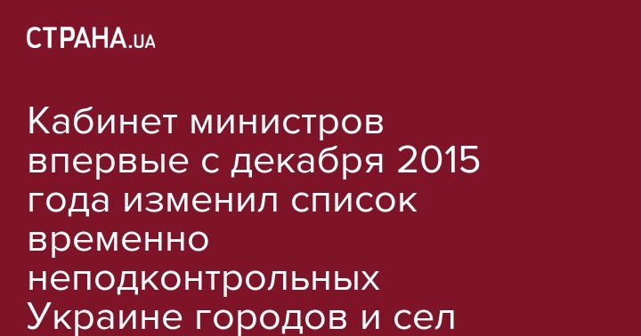 Кабинет министров Украины изменил перечень населенных пунктов, временно неподконтрольных Украине. Об этом сообщает "Юрлига".