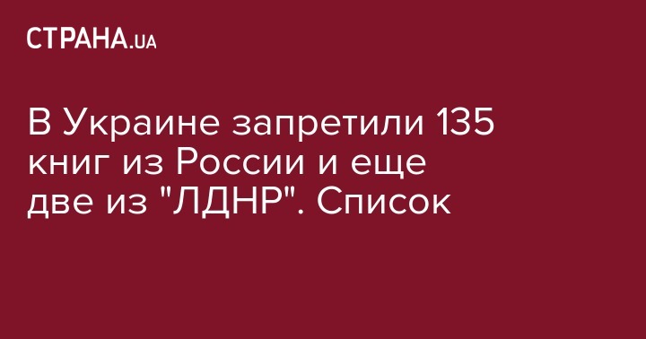 Государственный комитет телевидения и радиовещания Украины запретил 135 книг, напечатанных издательствами России и 2 книги, изданные в т.н. "ЛДНР".