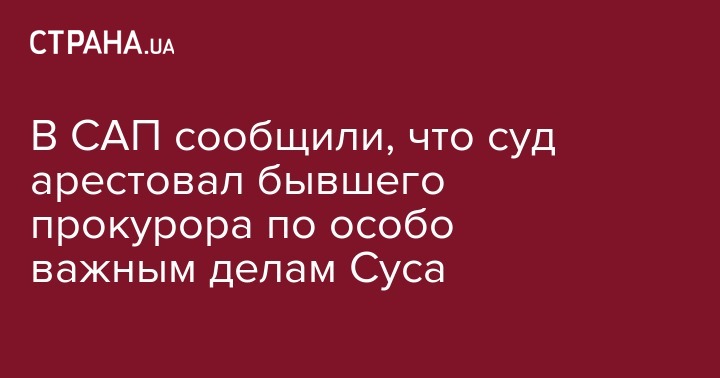 В САП сообщили, что суд арестовал бывшего прокурора по особо важным делам Суса