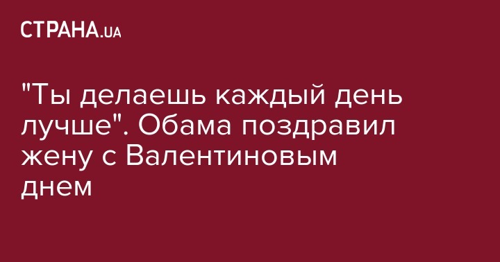Бывший президент США Барак Обама поздравил свою жену Мишель с Днем всех влюбленных, отметив, что с ней каждый день и каждое место становится лучше.