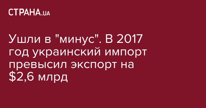 Ушли в "минус". В 2017 год украинский импорт превысил экспорт на $2,6 млрд
