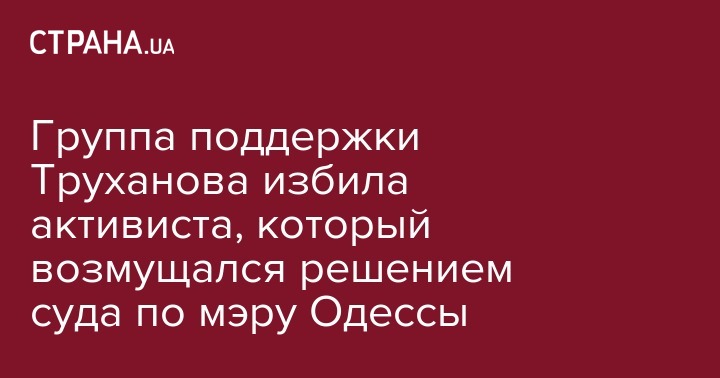 В Соломенском райсуде Киева неизвестные в балаклавах, которые поддерживали мэра Одессы Геннадия Труханова, избили активиста, который возмущался решением суда об освобождении Труханова из-под стражи на поруки.