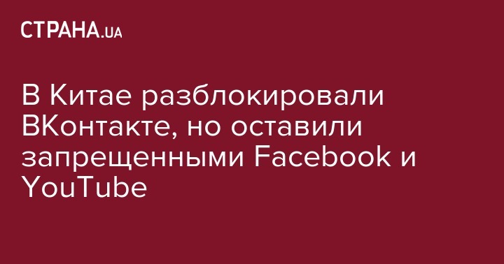 В Китае разблокировали ВКонтакте, но оставили запрещенными Facebook и YouTube