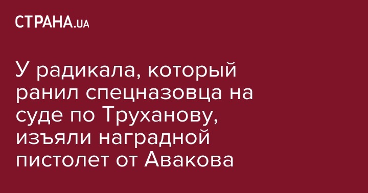 У националиста, который ранил полицейского во время вчерашних беспорядков у Соломенского суда столицы, где избирали меру пресечения мэру Одессы Геннадию Труханову, изъяли наградной пистолет, выданный министром внутренних дел Арсеном Аваковым.