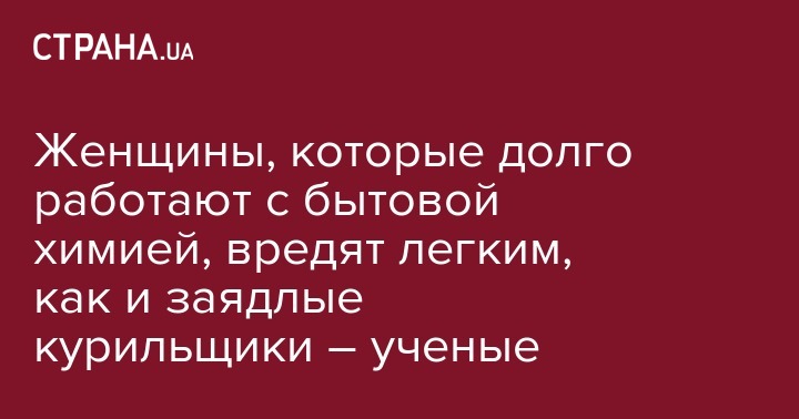 Норвежские ученые выяснили, что женщины, которые в течение 20 лет работали с бытовой химией, нанесли своим легким вред, примерно равный ежедневному выкуриванию пачки сигарет.