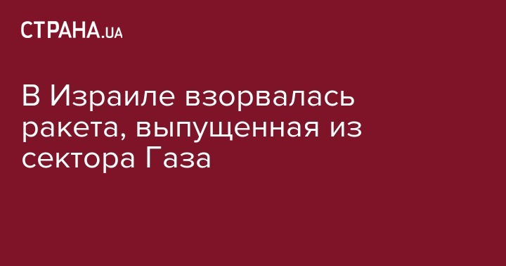 В Израиле взорвалась ракета, выпущенная из сектора Газа