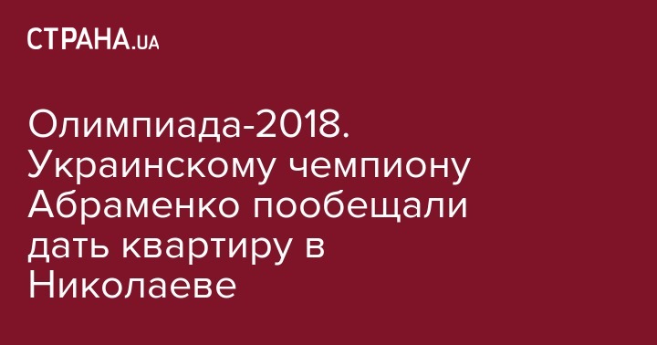 После того, как уроженец Николаева фристайлист Александр Абраменко завоевал золото на Олимпиаде 2018, губернатор Николаевской области Алексей Савченко пообещал решить вопрос обеспечения спортсмена жильем.