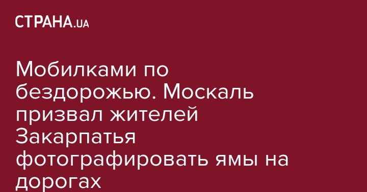 "Служба автомобильных дорог не знает, в каком ужасном состоянии находятся дороги Закарпатья, поэтому я прошу жителей области сделать фото этих ям и выбоин и отправить в Службу автомобильных дорог на электронные адреса. При этом служба не утверждает Закарпатью перечень дорог для ремонта, требуя по каждой из них фото или видео ям, выбоин", - заявил Москаль.