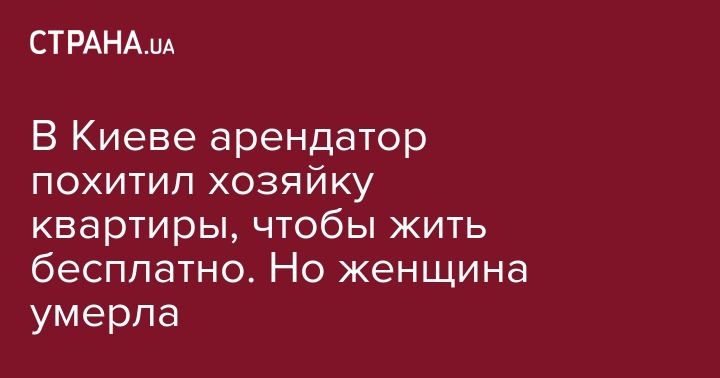 В Киеве арендатор похитил хозяйку квартиры, чтобы жить бесплатно. Но женщина умерла