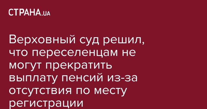 Верховный Суд Украины при рассмотрении дела № 263/7763/17 разъяснил, что нельзя прекратить выплачивать пенсии переселенцам ввиду их отсутствия по месту жительства. Постановление по делу № 263/7763/17 (К/9901/202/17) было вынесено 6 февраля.