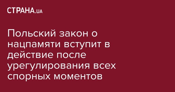 Польский закон о нацпамяти вступит в действие после урегулирования всех спорных моментов
