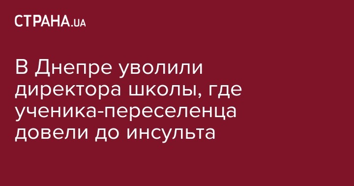 В Днепре уволили директора школы, где произошел скандал из-за травли ученика 5 класса. Преподаватели и ученики затравили ребенка из семьи переселенцев с Донбасса до инсульта.