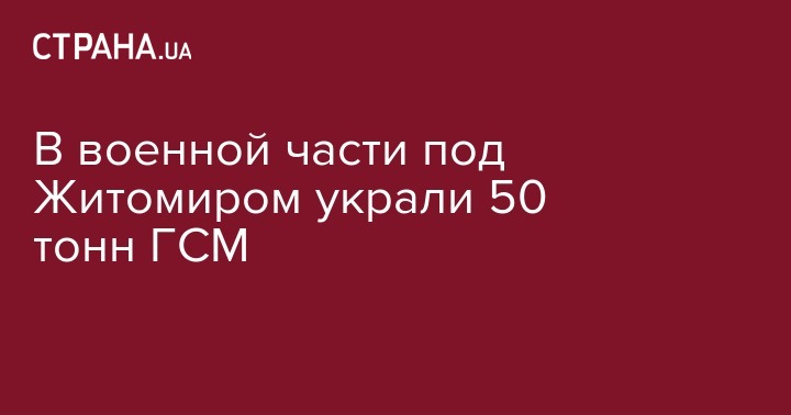 Четыре человека из числа командования одной из воинских частей Житомирской области похитили 50 тонн горюче-смазочных материалов.