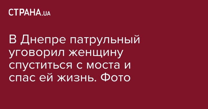 В Днепре патрульный уговорил спуститься женщину, которая сидела на краешке железной арки пешеходного моста к Монастырскому острову и спас ей жизнь.