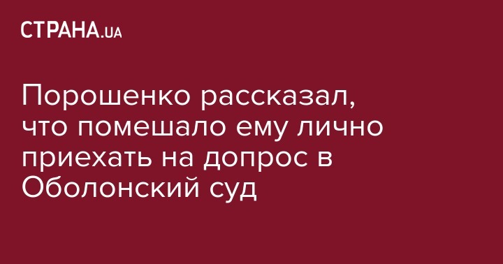 Порошенко рассказал, что помешало ему лично приехать на допрос в Оболонский суд