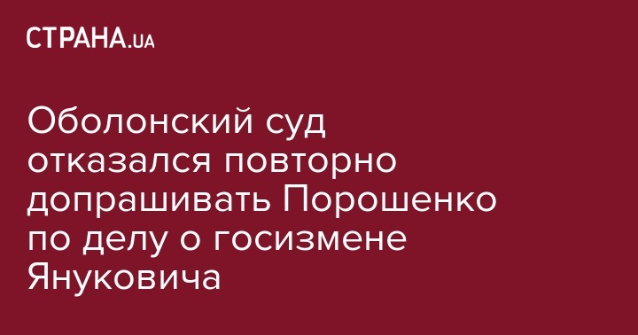 Оболонский районный суд Киева отказал защите Виктора Януковича в повторном допросе президента Петра Порошенко.
