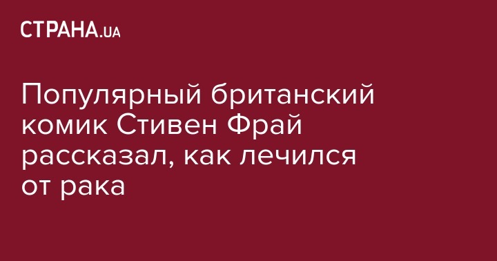 Известный английский актер и писатель Стивен Фрай объявил, что прошел лечение от онкологического заболевания.