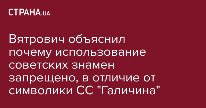Любопытно, что к символике, которую использовали войска нацисткой Германии Вятрович куда более терпим. Ранее, отвечая на запрос "Страны", глава Института национальной памяти заявил, что символика дивизии СС "Галичина" не подпадает под закон о запрете пропаганды коммунизма и нацизма.