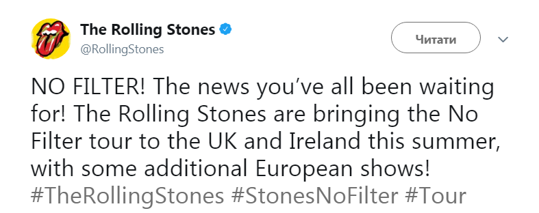 — The Rolling Stones (@RollingStones) 26 лютого 2018 р.
