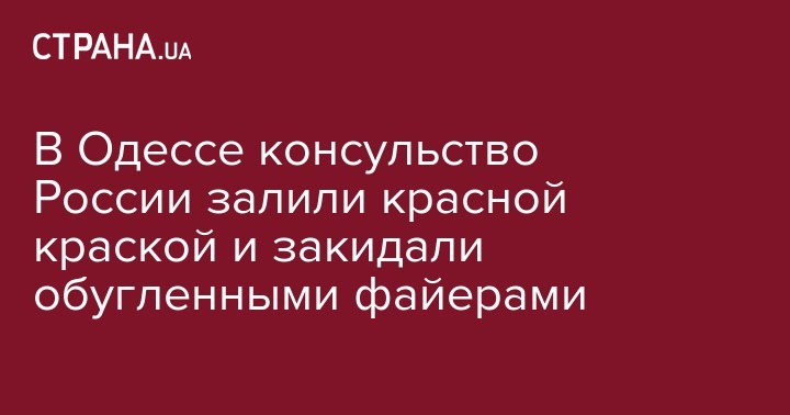 В Одессе консульство России залили красной краской и закидали обугленными файерами