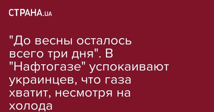 В сообщении говорится, что синоптики прогнозируют морозную погоду, но уже через 3-4 дня ожидается потепление. В НАК "Нафтогаз Украина" надеются, что весна не преподнесет температурных сюрпризов и заявляют, что запасов газа хватит до конца отопительного сезона.