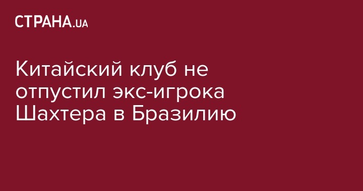 Китайский клуб не отпустил экс-игрока Шахтера в Бразилию