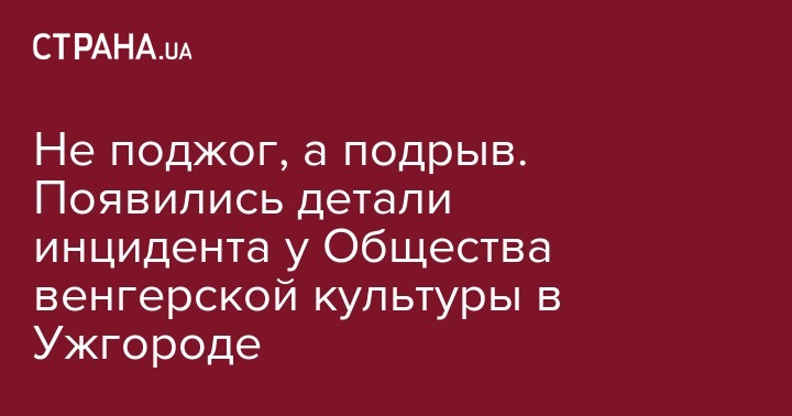 Общество венгерской культуры Закарпатья (ОВКЗ) не подожгли, а взорвали. Об этом рассказал первый заместитель председателя Закарпатского областного совета и заместитель председателя ОВКЗ Иосиф Борт, передает Mukachevo.net.