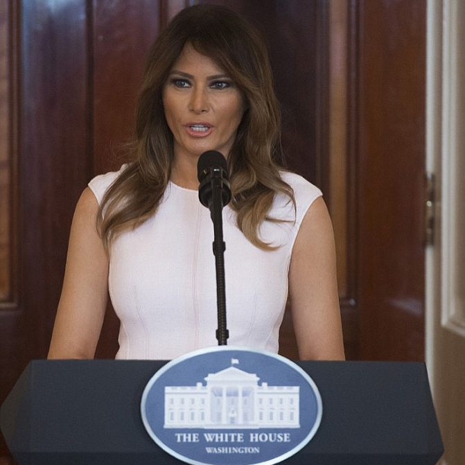 Мелания Трамп выступила в Белом доме в розовом платье и с пламенной речью