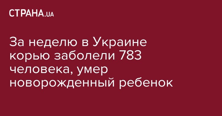 За прошедшую неделю в стране корью заболели 783 человека, что на 5% меньше по сравнению с предыдущей неделей, в Одесской области умер новорожденный ребенок.
