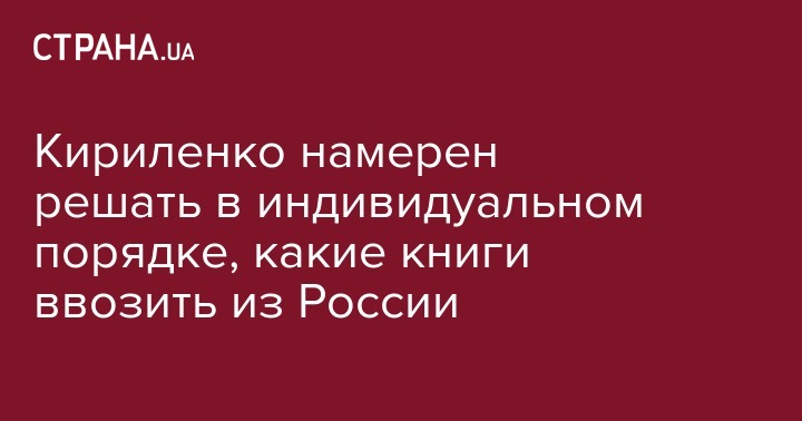 Как сообщала "Страна", после фильмов и музыки, вице-премьер Кириленко хочет запретить российские книги. Вице-премьер-министр Украины Вячеслав Кириленко рассчитывает на завершение разработки законопроекта о защите украинского рынка от российских изданий антиукраинского содержания до 10 мая.