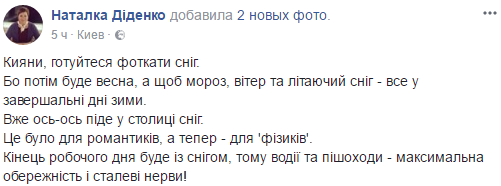 По данным Диденко, 1 марта на всей территории Украины, кроме западных областей, ожидается снежная вьюжная погода.