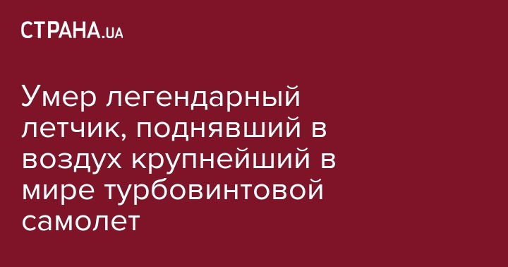 Умер легендарный летчик, поднявший в воздух крупнейший в мире турбовинтовой самолет